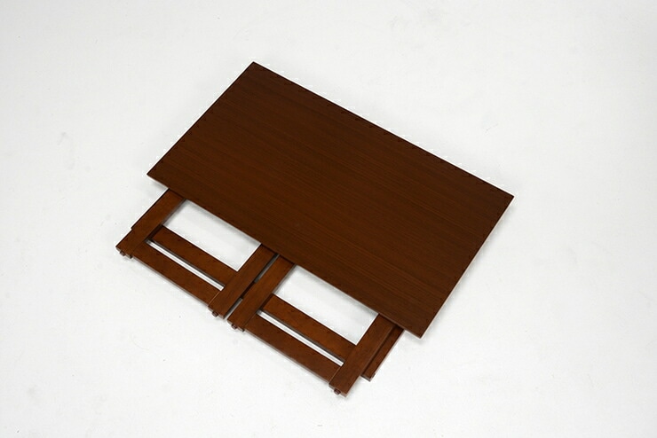 簡単に折りたためて狭い隙間にも収納が可能。アジャスターとキャスターの付け替えが出来て便利なテーブル。