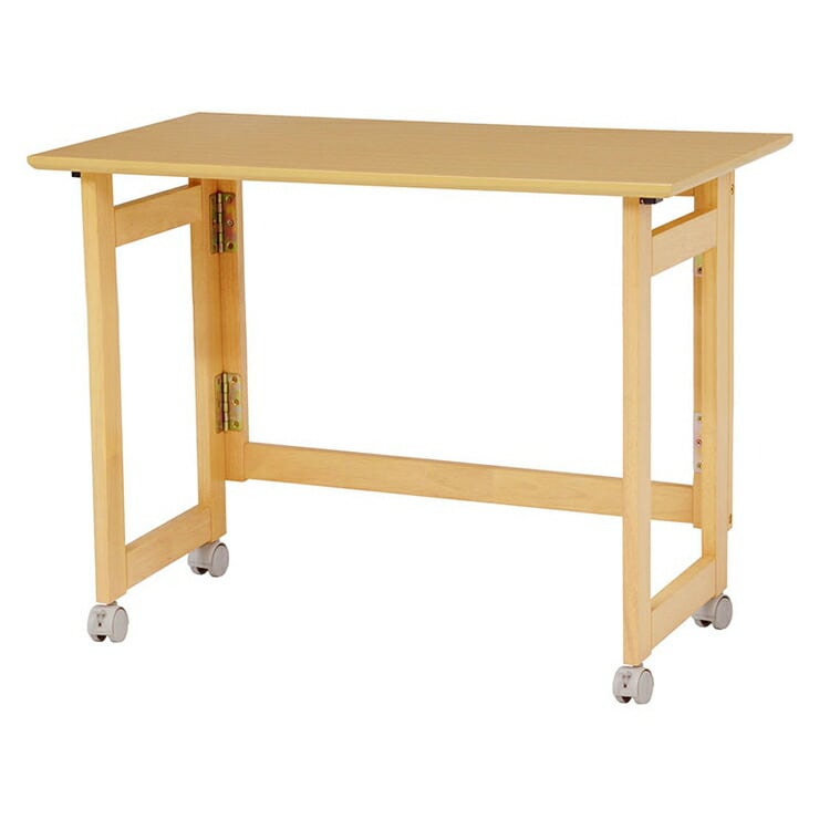 簡単に折りたためて狭い隙間にも収納が可能。アジャスターとキャスターの付け替えが出来て便利なテーブル。