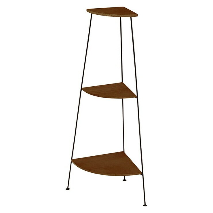 木材と細めのアイアンを組み合わせたラック。部屋のコーナーのインテリアやデットスペースの活用に。