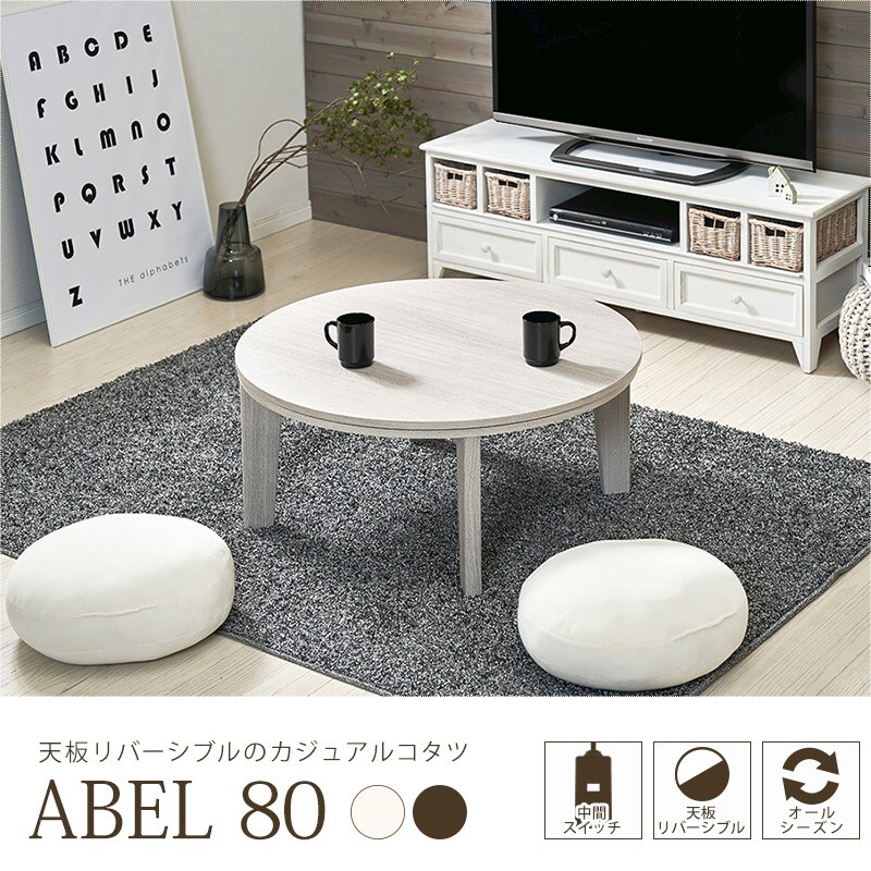 こたつテーブル 円形 直径80cm アベル リバーシブル天板 かわいい おしゃれ カジュアルこたつ 萩原 コタツ 炬燵 暖房 丸形 300W センターテーブル【送料無料】