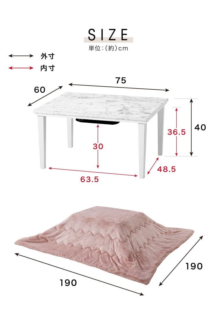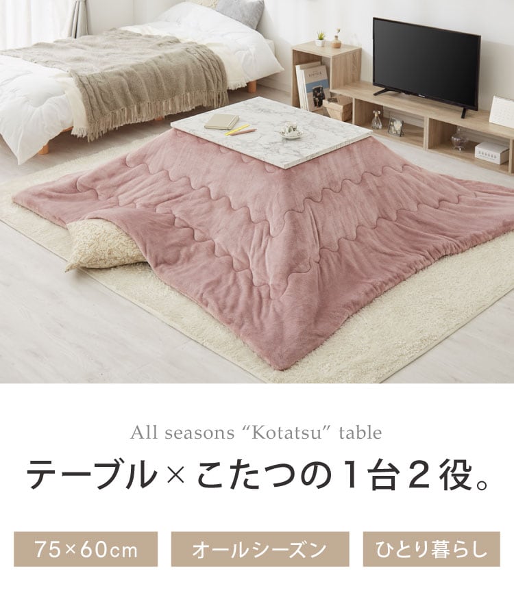 大理石調 カジュアルこたつ 布団付き 2点セット テーブル+掛け布団 75×60 炬燵 コタツ 北欧 メレンゲタッチ とろけるこたつ布団 ふわとろ かわいい 可愛い センターテーブル ローテーブル おしゃれ【送料無料】