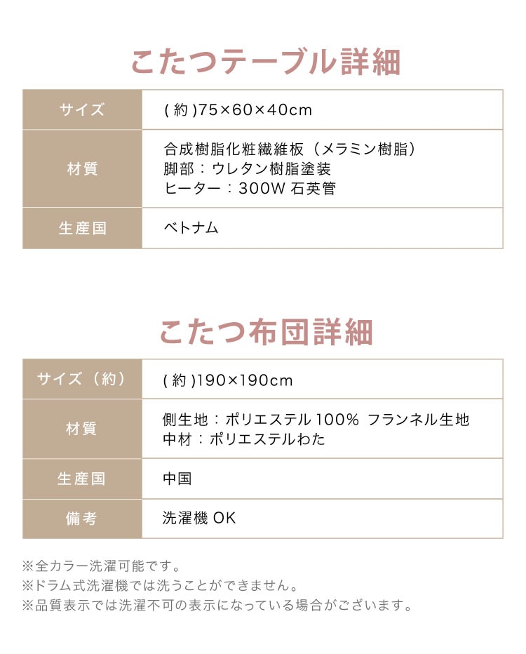 ※品質表示では洗濯不可の表示になっている場合がございますが、洗濯可能です。(ただしドラム式洗濯機は不可)