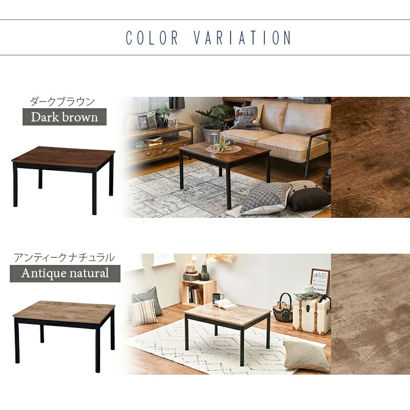 こたつテーブル 75cm×60cm コタツ ヴィンテージ アンティーク U字型石英管ヒーター 300W 継ぎ脚 高さ調節【送料無料】