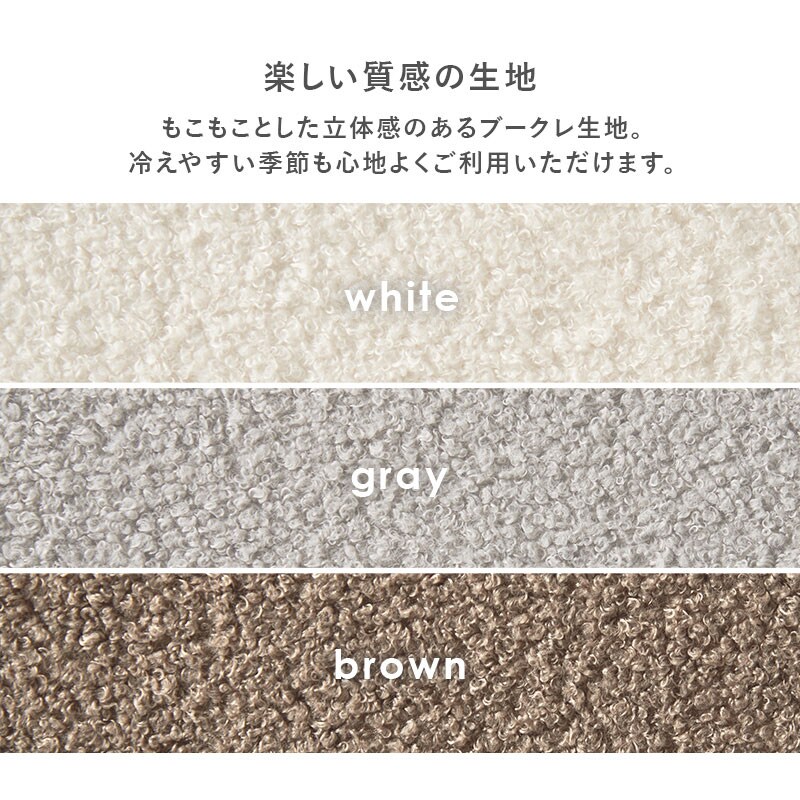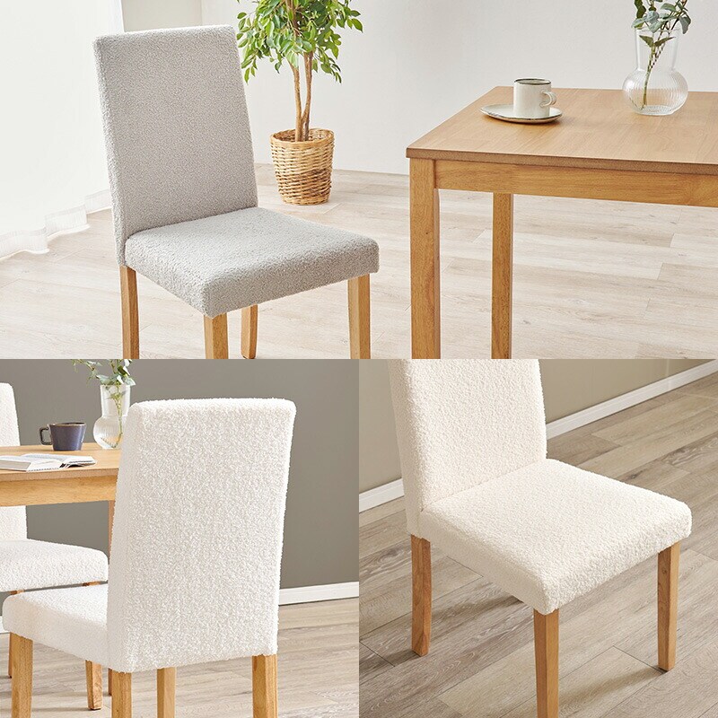 ゆったりくつろげるハイバック仕様のダイニングチェア。もこもことした立体感のあるブークレ生地を使用。