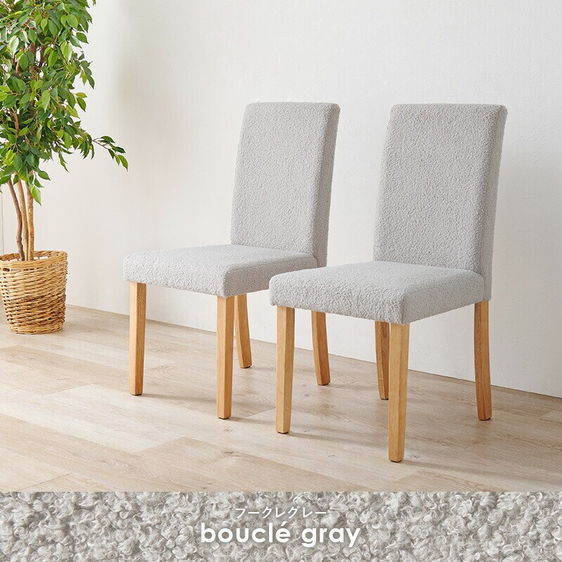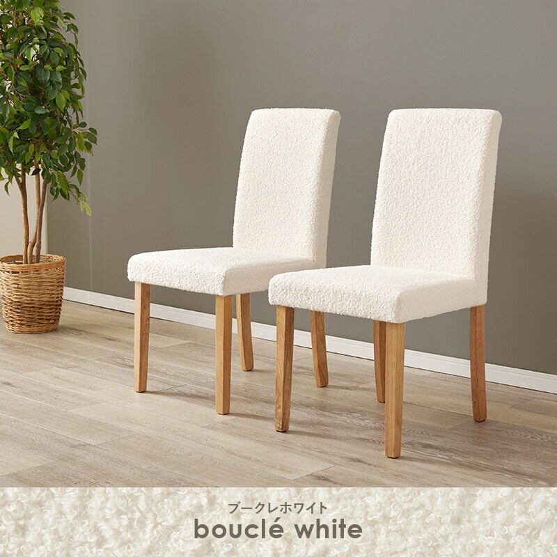 ダイニングチェア 2脚セット ブークレ もこもこ生地 ゆったり ハイバック仕様 天然木脚 ファブリック チェア 椅子 イス 北欧 かわいい 可愛い おしゃれ【送料無料】