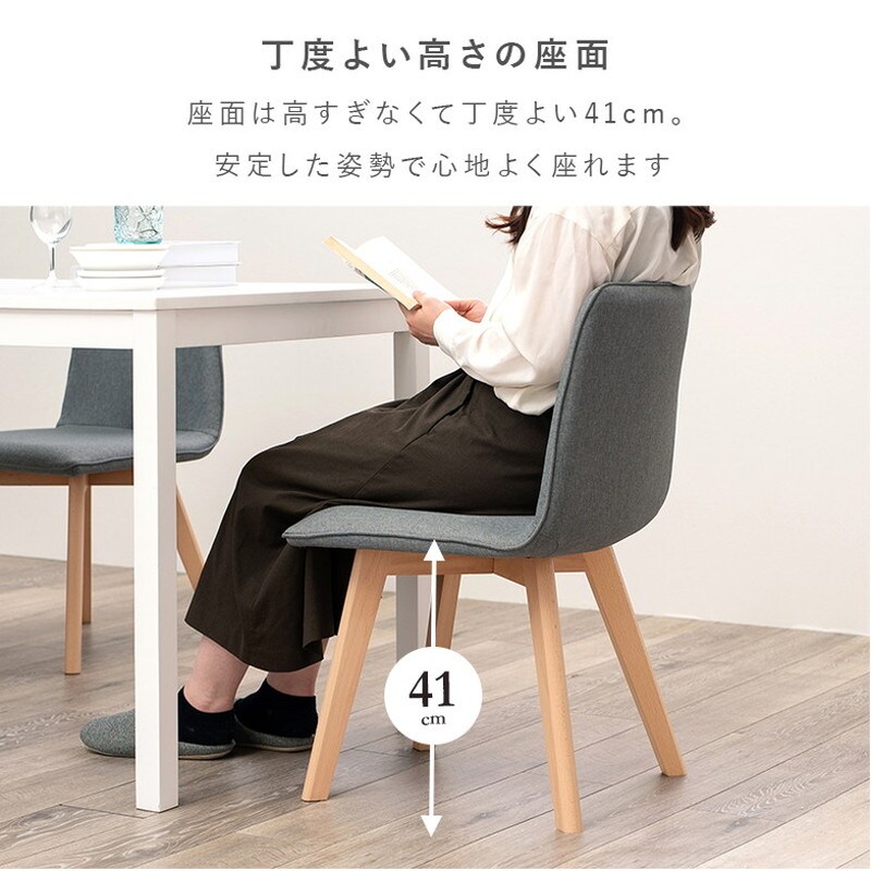 天然木の脚、丸みを帯びたシルエットが北欧を連想させる、可愛らしいデザインのダイニングチェア。
