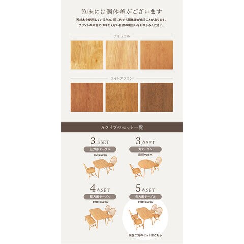 主材:天然木、天板:(ナチュラル、ライトブラウン)天然木化粧繊維板・(ホワイト)繊維板