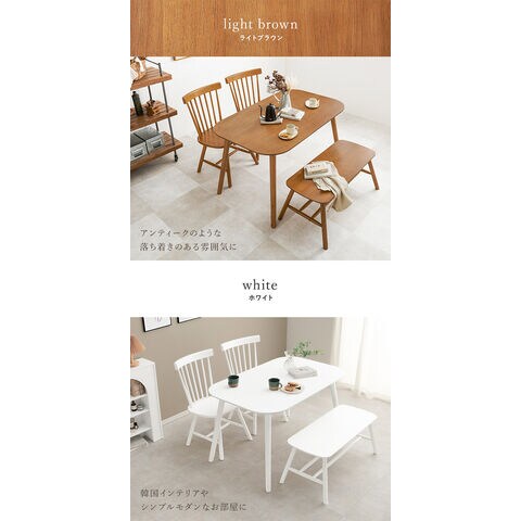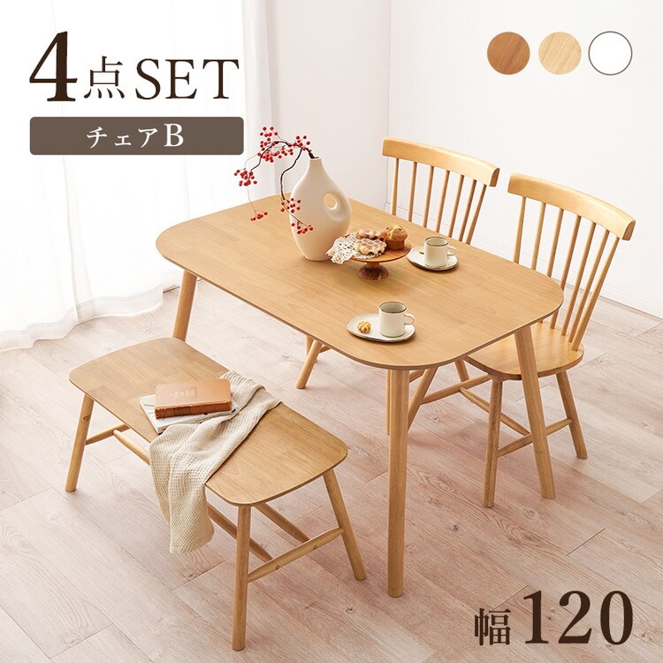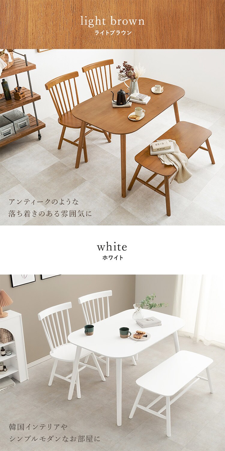 人気のウィンザーチェアと棚付きベンチを取り入れたダイニング4点セット