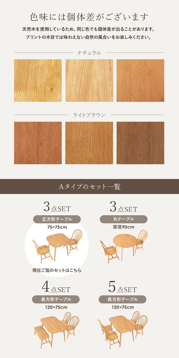 人気のウィンザーチェアを取り入れたダイニング3点セット