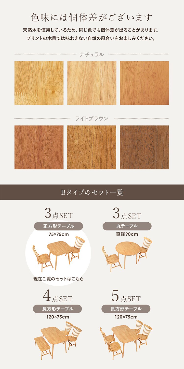 主材:天然木、天板:(ナチュラル、ライトブラウン)天然木化粧繊維板・(ホワイト)繊維板