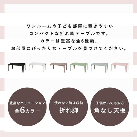 くすみカラーやモノトーンカラーが選べ、コンパクトサイズでワンルームや1人部屋にぴったり。省スペース収納可能な折れ脚タイプ