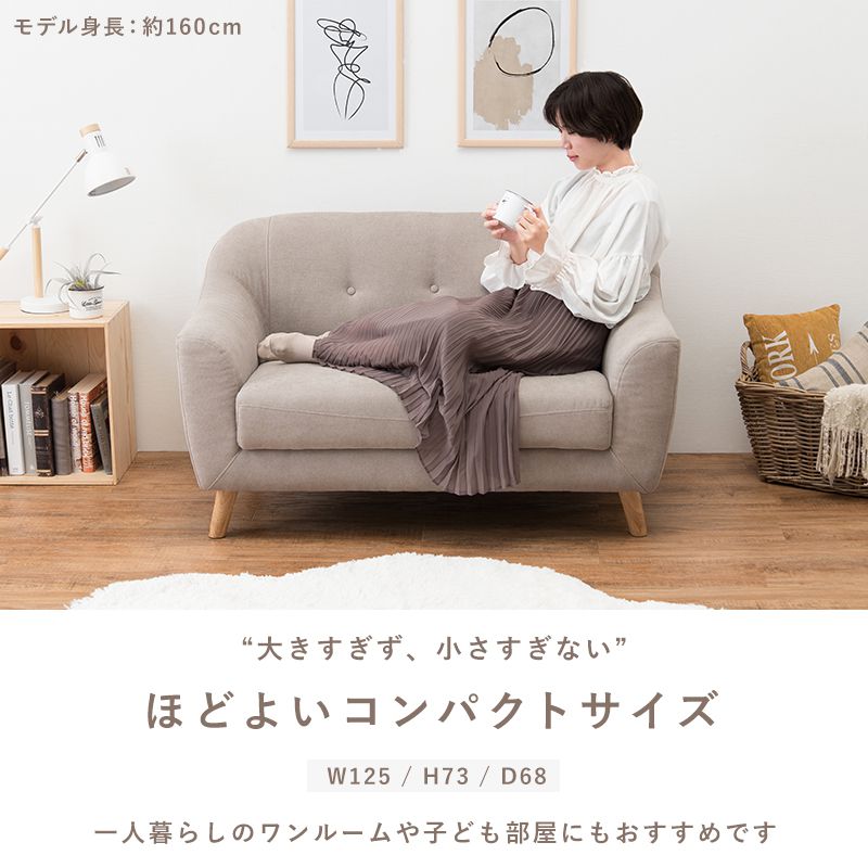 ソファー 2人掛け 幅125cm 姫系 カフェ風 ローソファー 天然木脚 北欧 コンパクト おしゃれ かわいい モダン 在宅 テレワーク【送料無料】