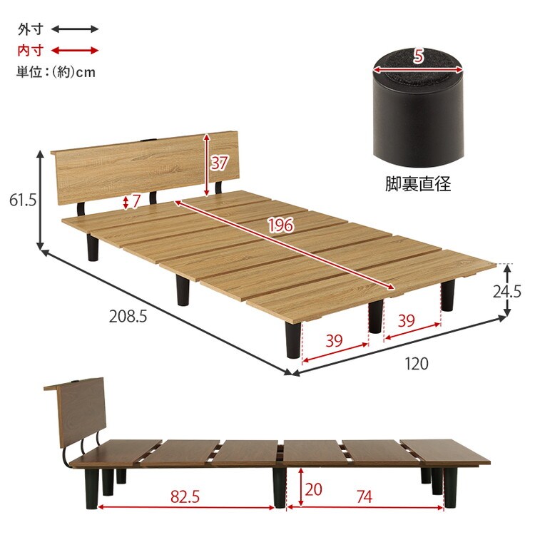 (約)幅120×奥行208.5×高さ61.5×床面高24.5cm