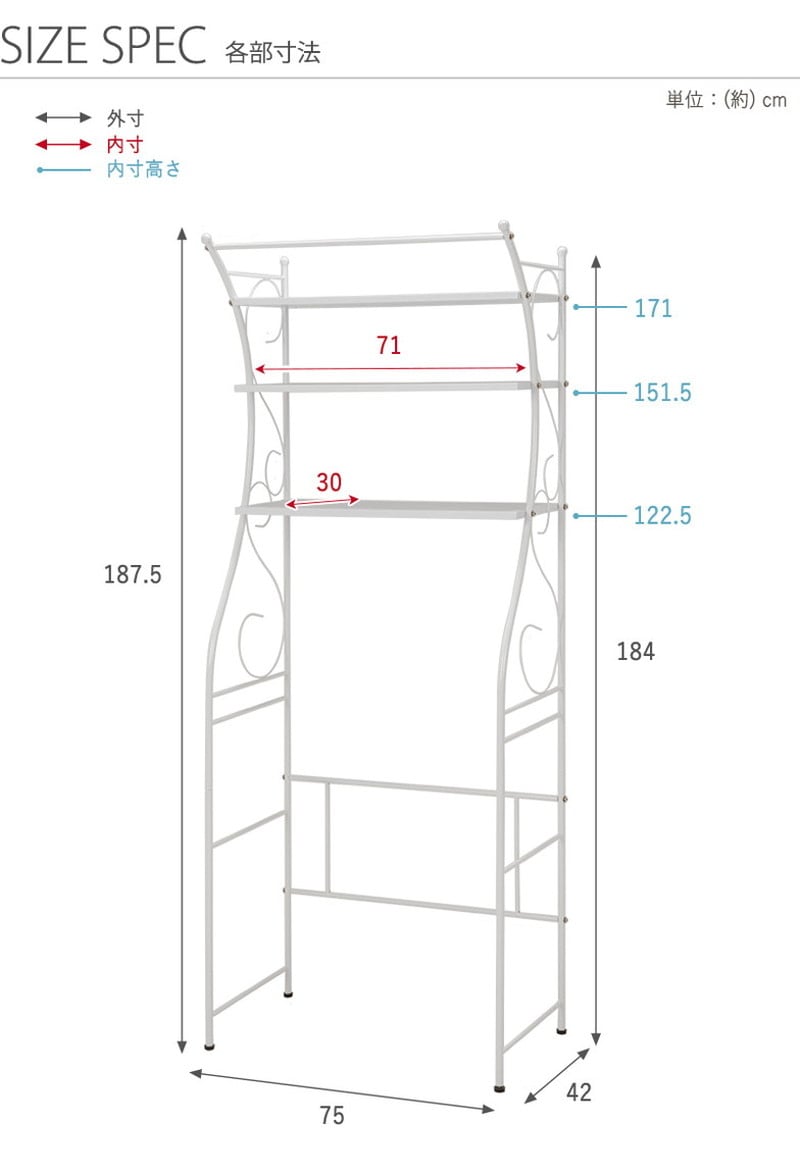 洗濯機ラック 幅75 ランドリーラック 洗濯機上ラック 姫系 かわいい 曲線 エレガント ランドリー収納 棚 新生活 おしゃれ【送料無料】