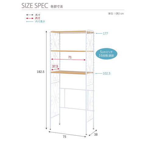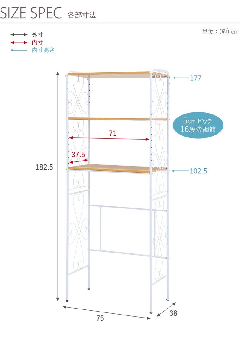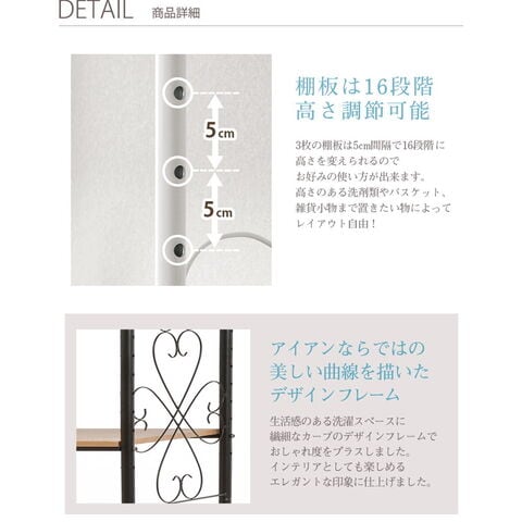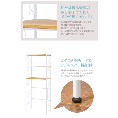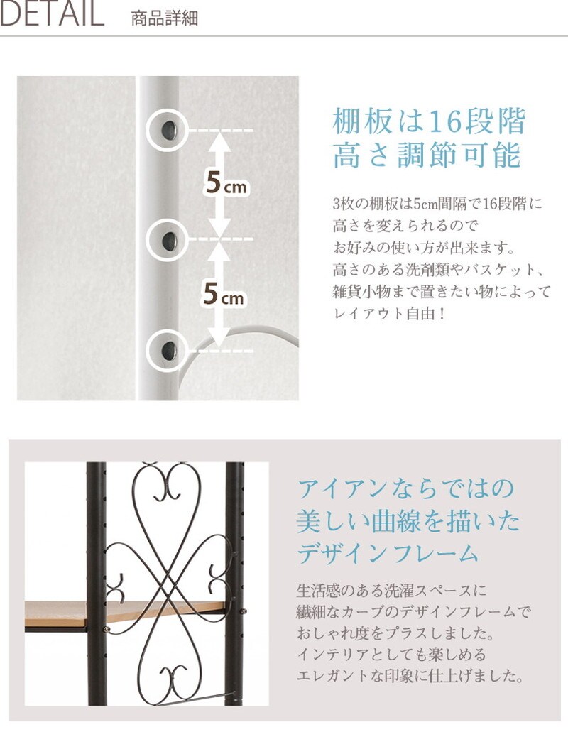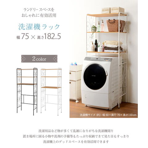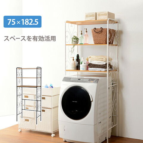 洗濯機ラック 幅75 ランドリーラック 洗濯機上ラック 姫系 かわいい エレガント ランドリー収納 棚 新生活 おしゃれ【送料無料】