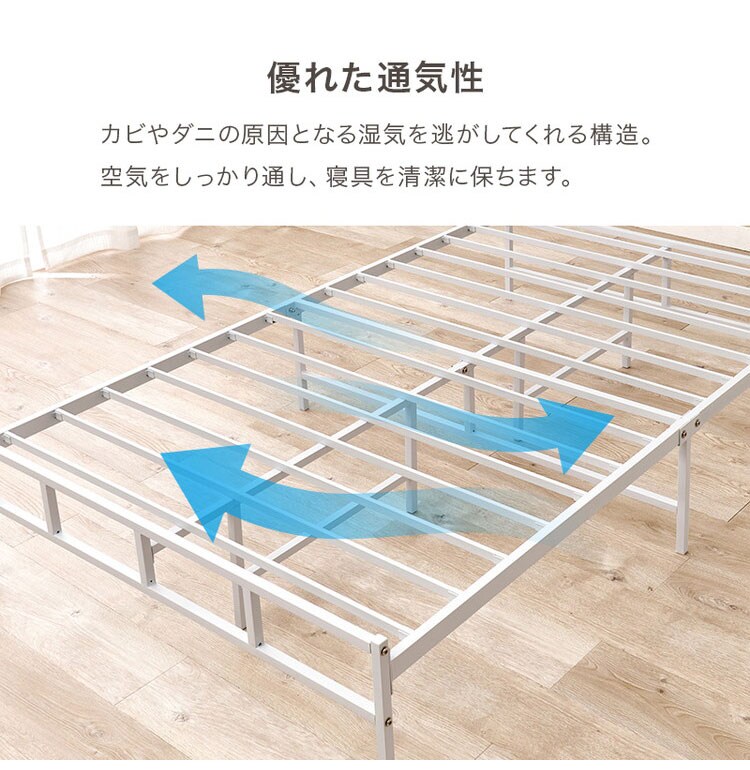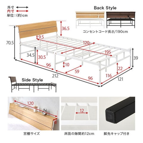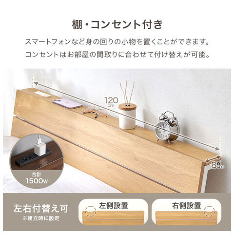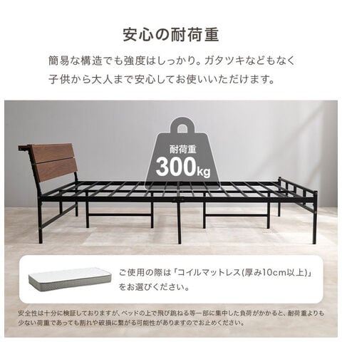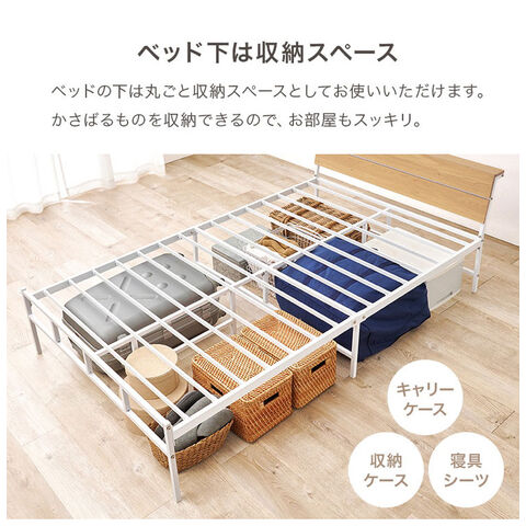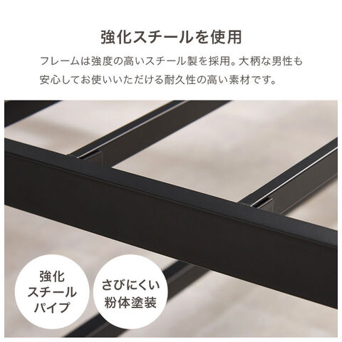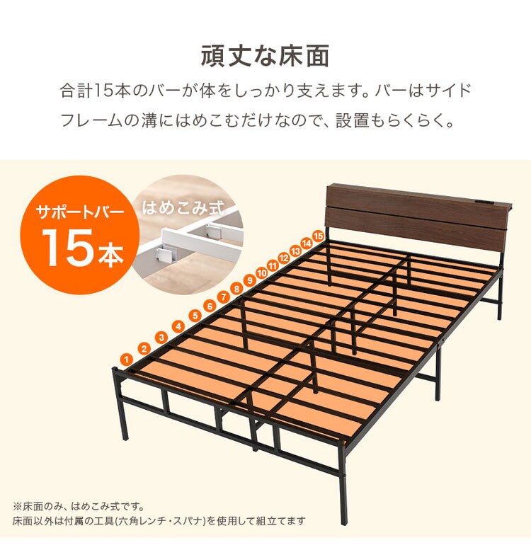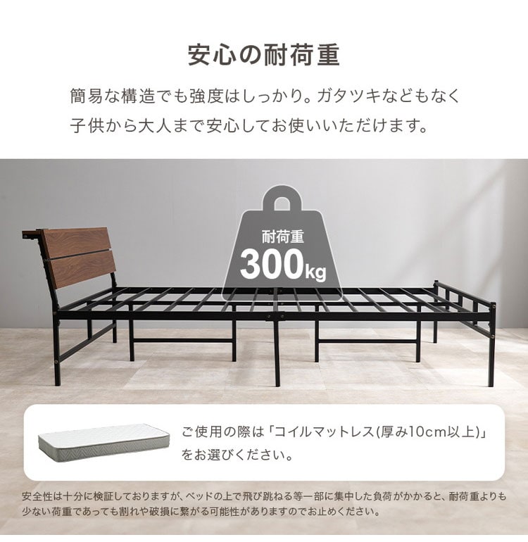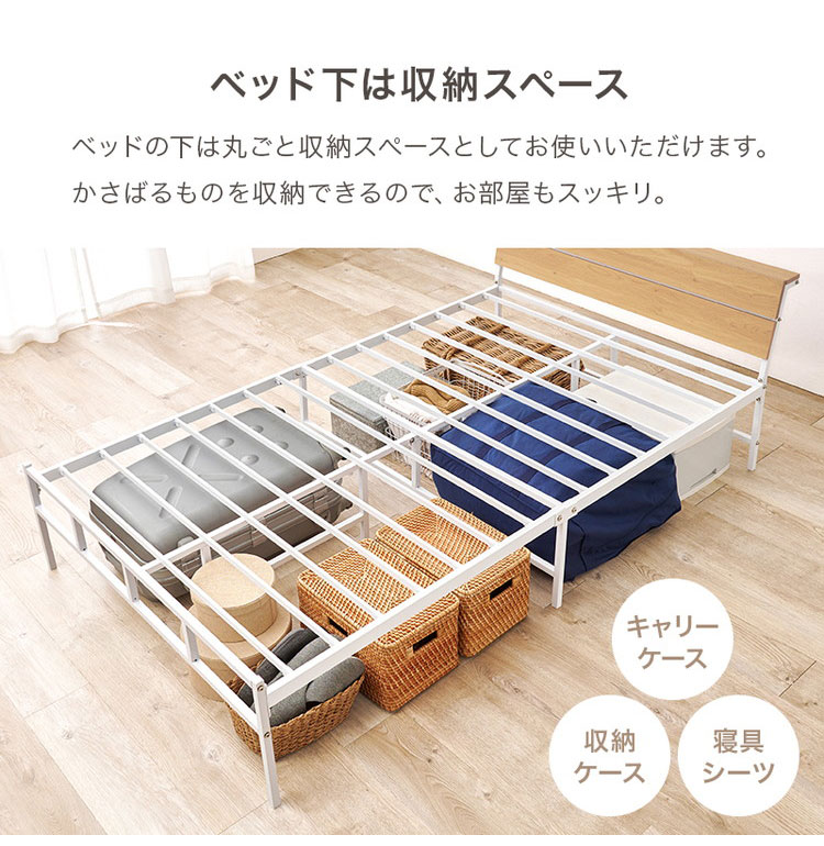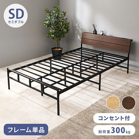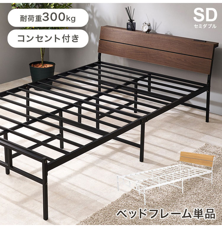 耐荷重300kg 頑丈スチールベッド セミダブル 棚コンセント付き ヘッドボード付き ベッドフレーム スチールベッド お掃除ロボット対応 ロボット掃除機対応 おしゃれ【送料無料】