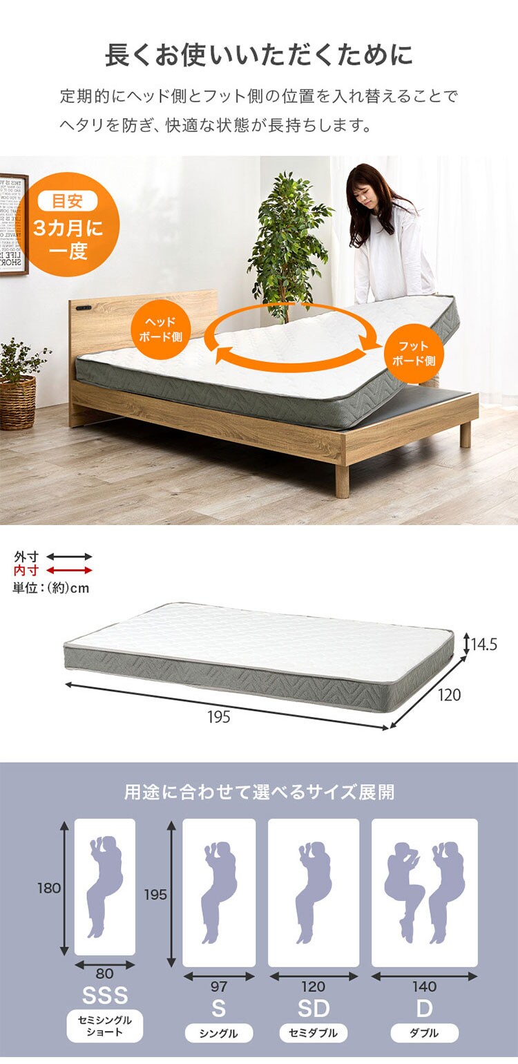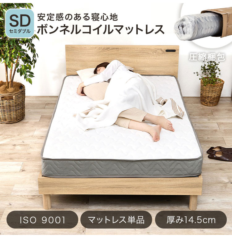 ボンネルコイルマットレス SD セミダブル 幅120cm 厚み14.5cm マットレス ボンネルコイル マット 敷布団 寝具 寝具インテリア おしゃれ 北欧【送料無料】