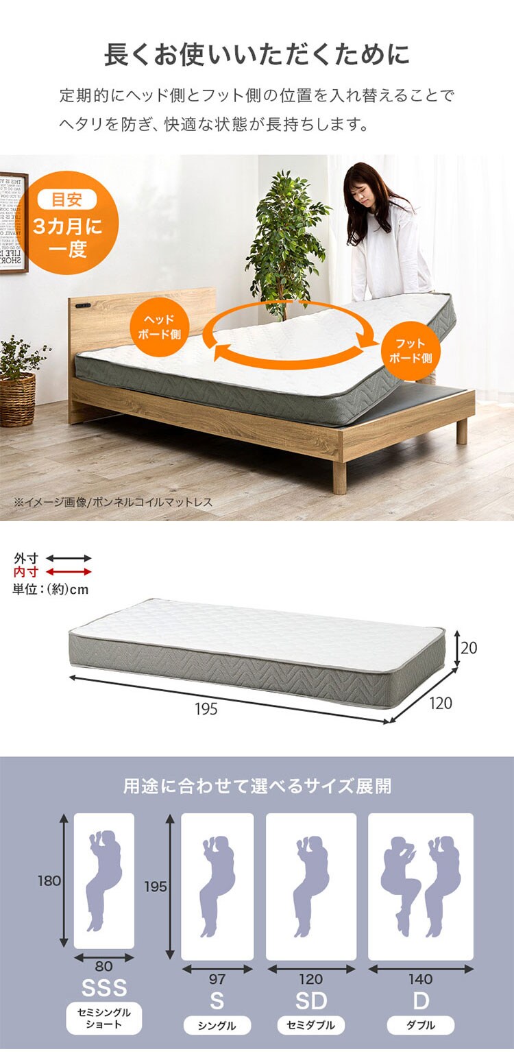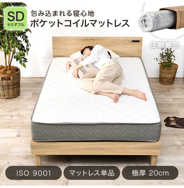 ポケットコイルマットレス SD セミダブル 幅120cm 厚み20cm マットレス ポケットコイル マット 敷布団 寝具 寝具インテリア おしゃれ 北欧【送料無料】
