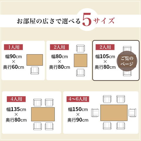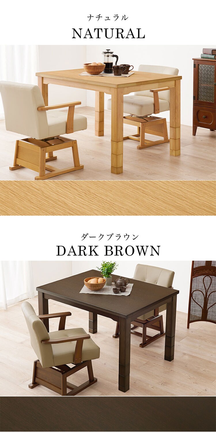 高さが6段階に変更できるこたつテーブル。ダイニングチェア、ソファ、座椅子などお使いの家具に合わせた高さに変更できます。