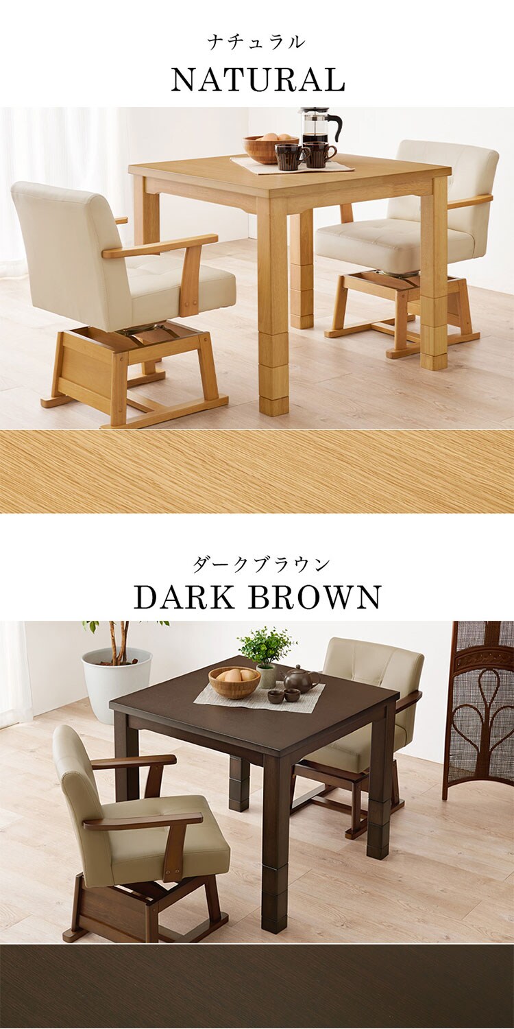 ダイニングこたつ 80×80 高さ調節6段階 継脚付き 天然木突板 薄型フラットヒーター こたつテーブル こたつデスク 机 北欧 和モダン おしゃれ【送料無料】