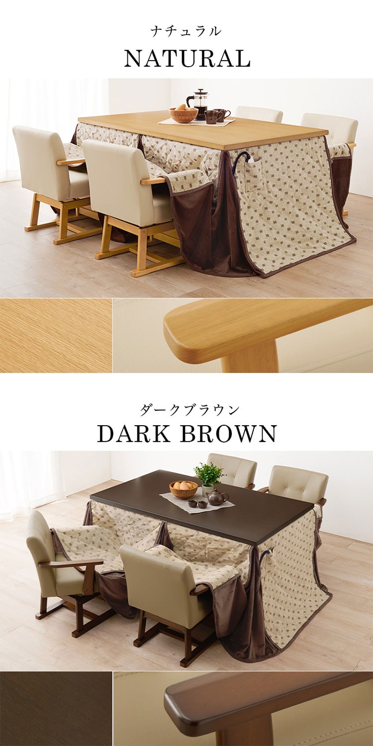 まとめて揃えられるダイニングこたつセット。ライフスタイルの変化に合わせて、テーブルの高さを6段階に変更できます。