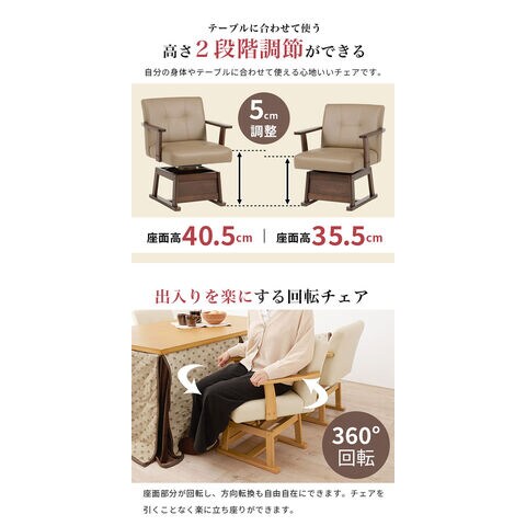 まとめて揃えられるダイニングこたつセット。ライフスタイルの変化に合わせて、テーブルの高さを6段階に変更できます。