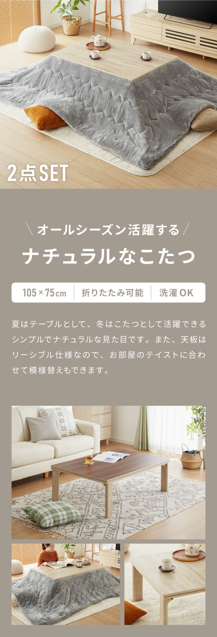 夏はテーブル・冬はこたつとしてオールシーズン使用できるカジュアルこたつ。