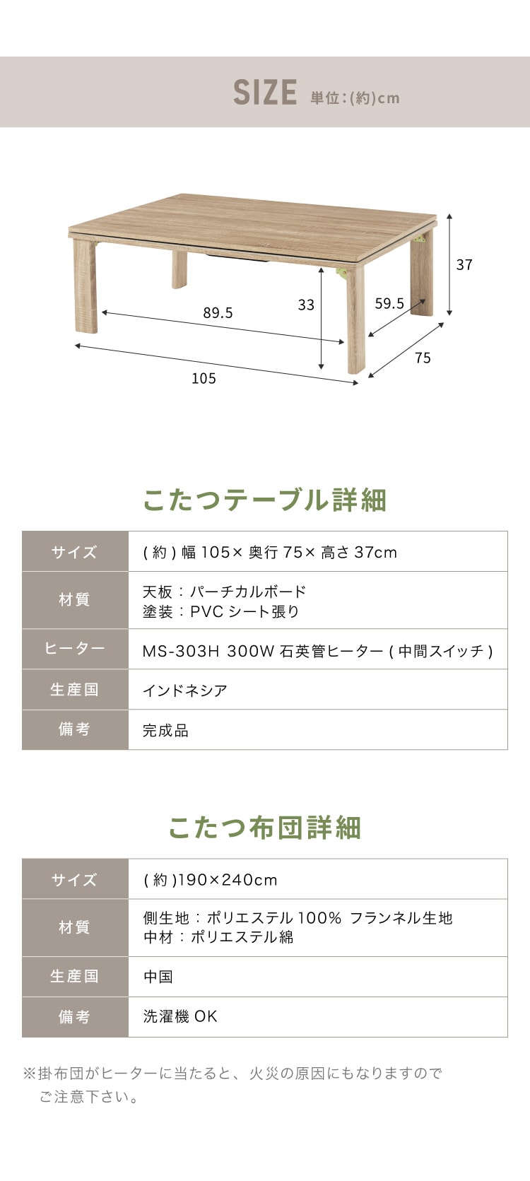 折りたたみ式 こたつ 布団付き 2点セット テーブル+掛け布団 105×75 長方形 折れ脚 こたつテーブル 炬燵 コタツ 北欧 メレンゲタッチ ふわとろ センターテーブル ローテーブル おしゃれ【送料無料】