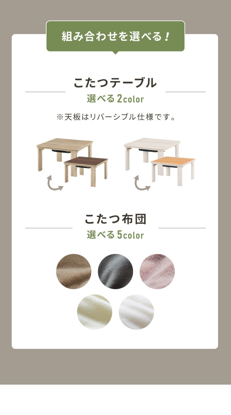夏はテーブル・冬はこたつとしてオールシーズン使用できるカジュアルこたつ。