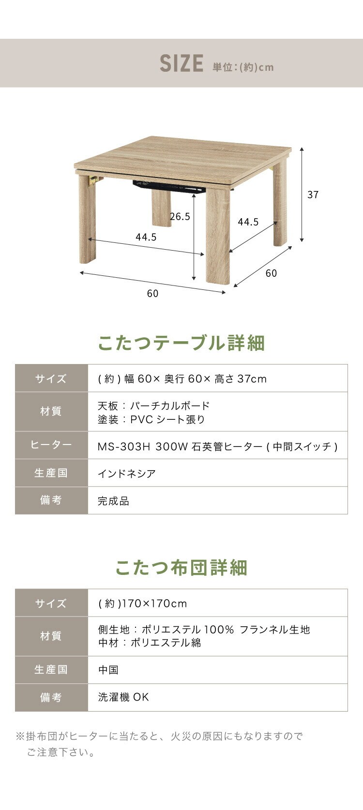 折りたたみ式 こたつ 布団付き 2点セット テーブル+掛け布団 60×60 正方形 折れ脚 こたつテーブル 炬燵 コタツ 北欧 メレンゲタッチ ふわとろ センターテーブル ローテーブル おしゃれ【送料無料】のレビュー