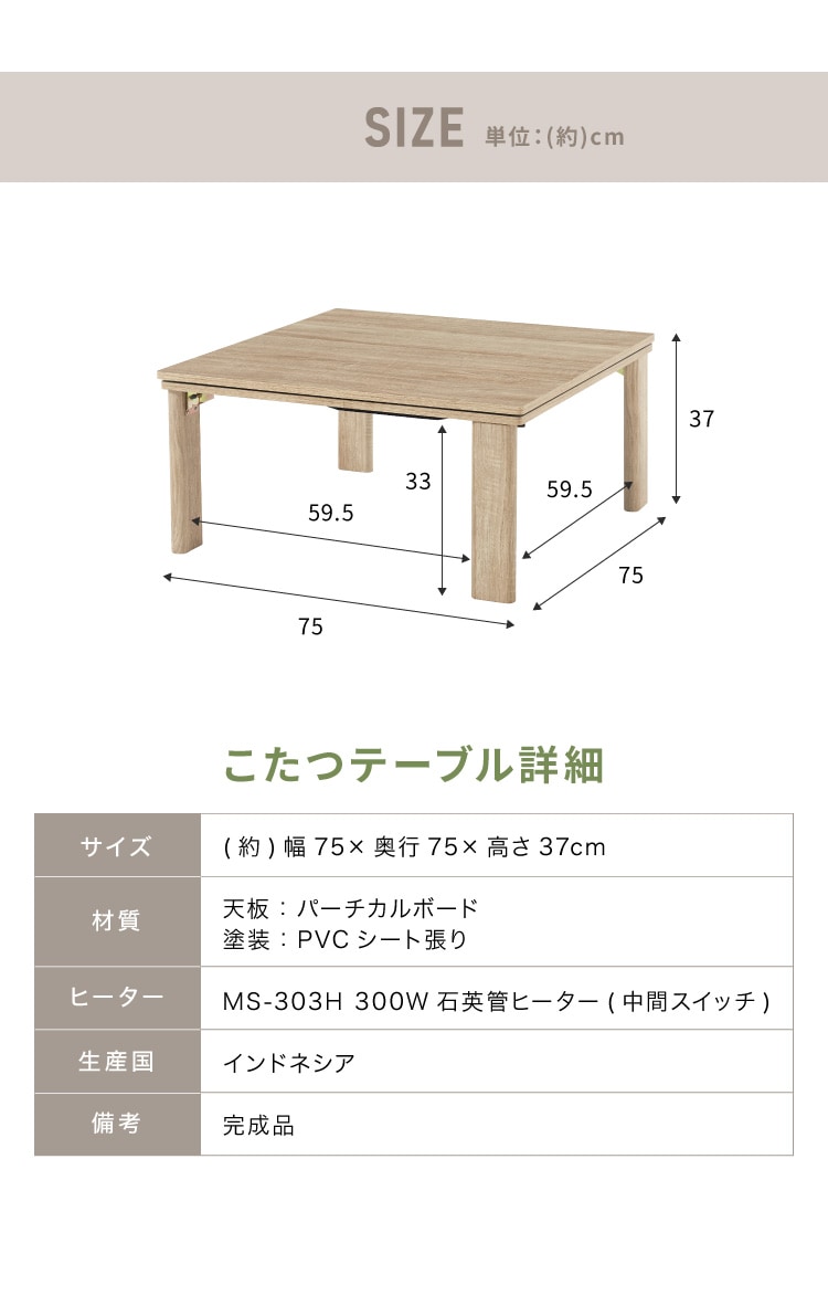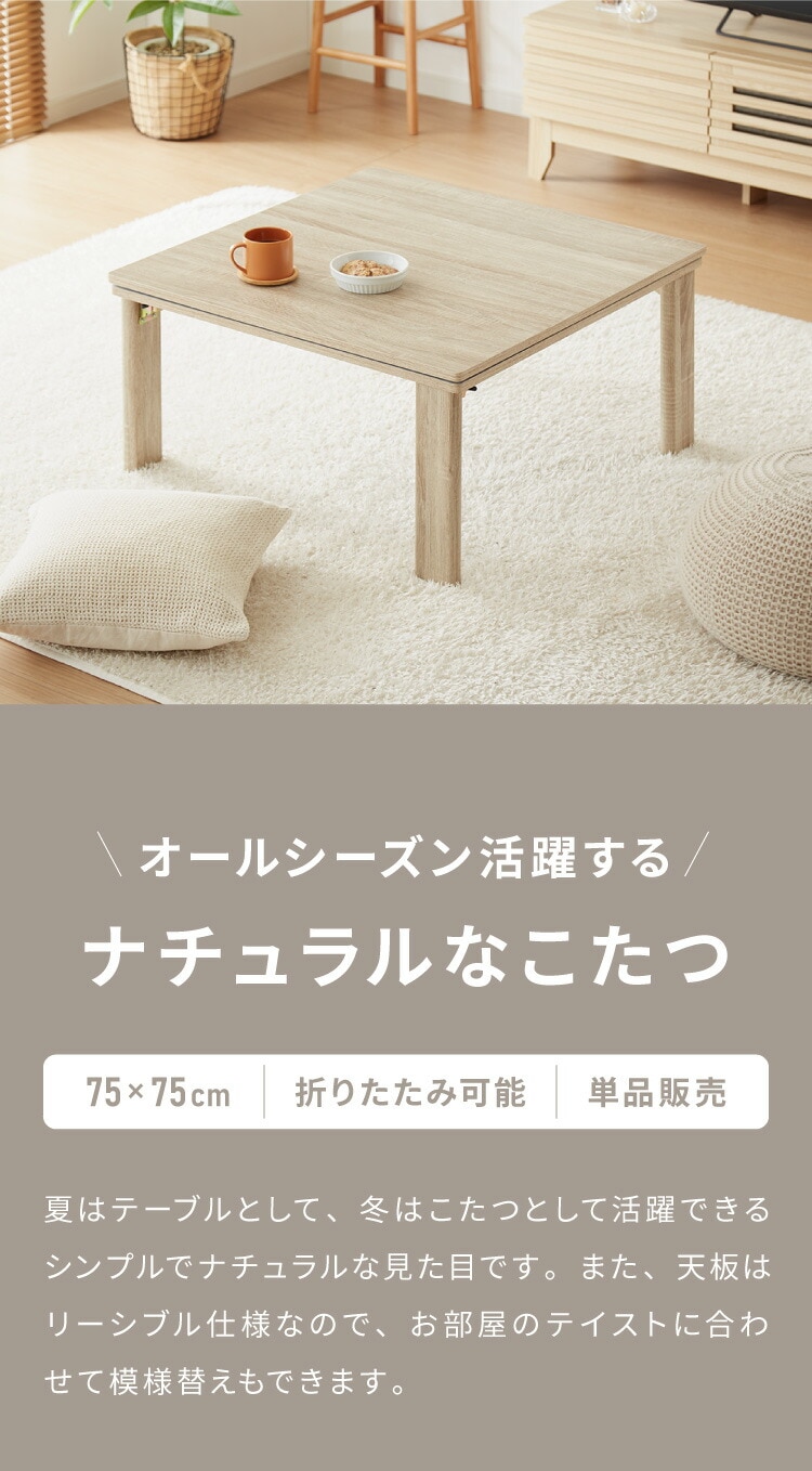 折りたたみ式 こたつ テーブル 75×75 正方形 折れ脚 こたつテーブル 炬燵 コタツ 北欧 木目調 センターテーブル ローテーブル おしゃれ【送料無料】