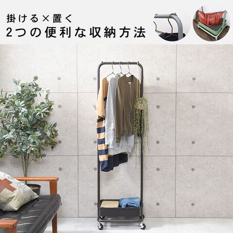 高さが変えられる。バスケット付きハンガーラック