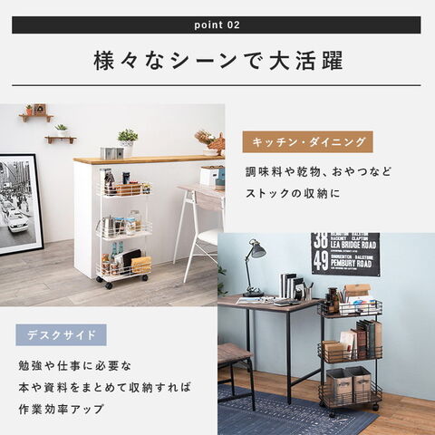 キッチンワゴン 完成品 3段 奥行20 スリム マルチワゴン キャスター付き すき間収納 コンパクト アイアン スチール リビング キッチンラック【送料無料】