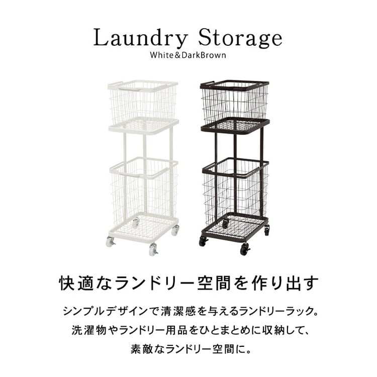 ランドリーワゴン+バスケット セット 2段 ランドリーラック シングル スリム キャスター付き 洗濯かご 洗濯カゴ 洗濯物入れ 洗濯物カゴ 脱衣かご スチール シンプル 白 ホワイト おしゃれ【送料無料】