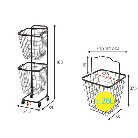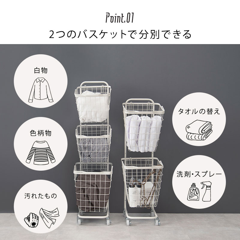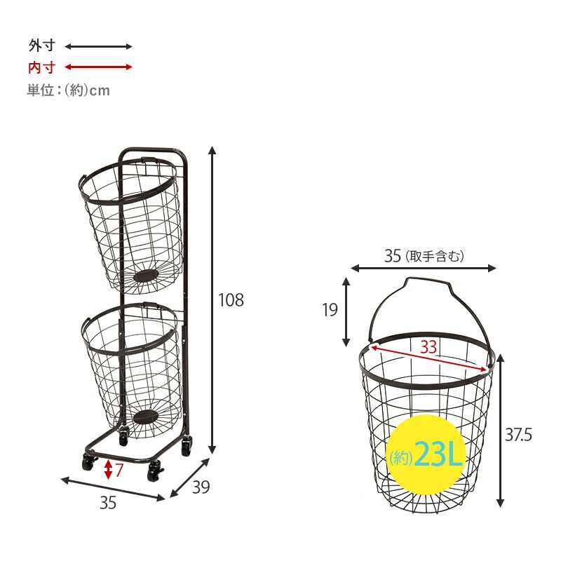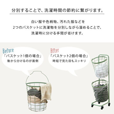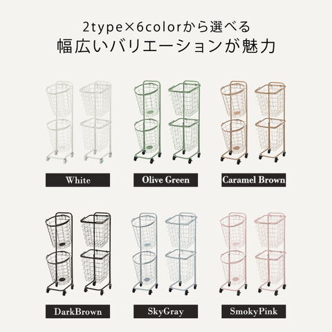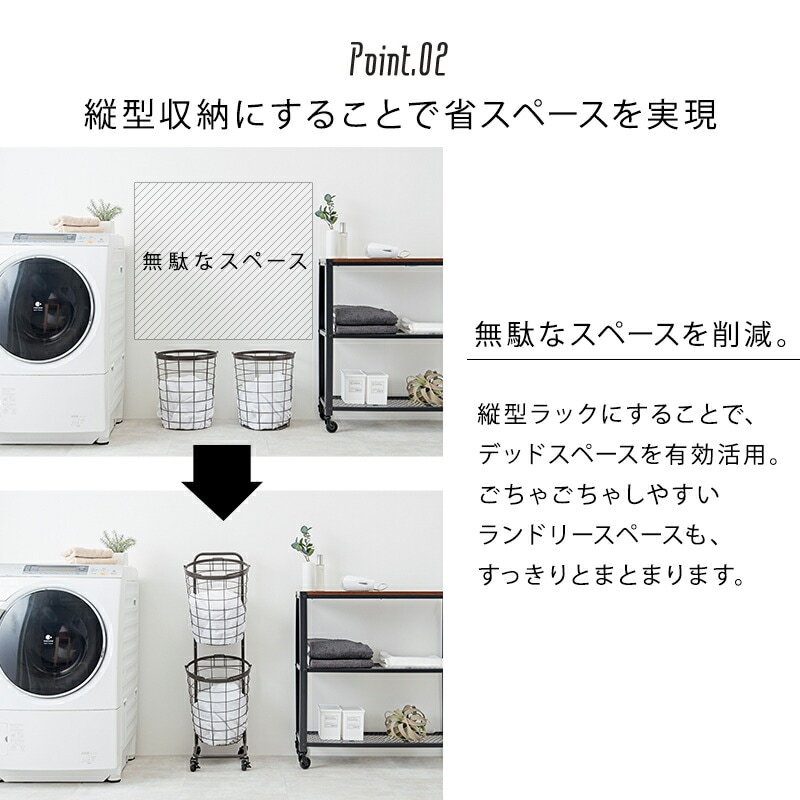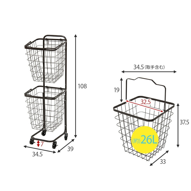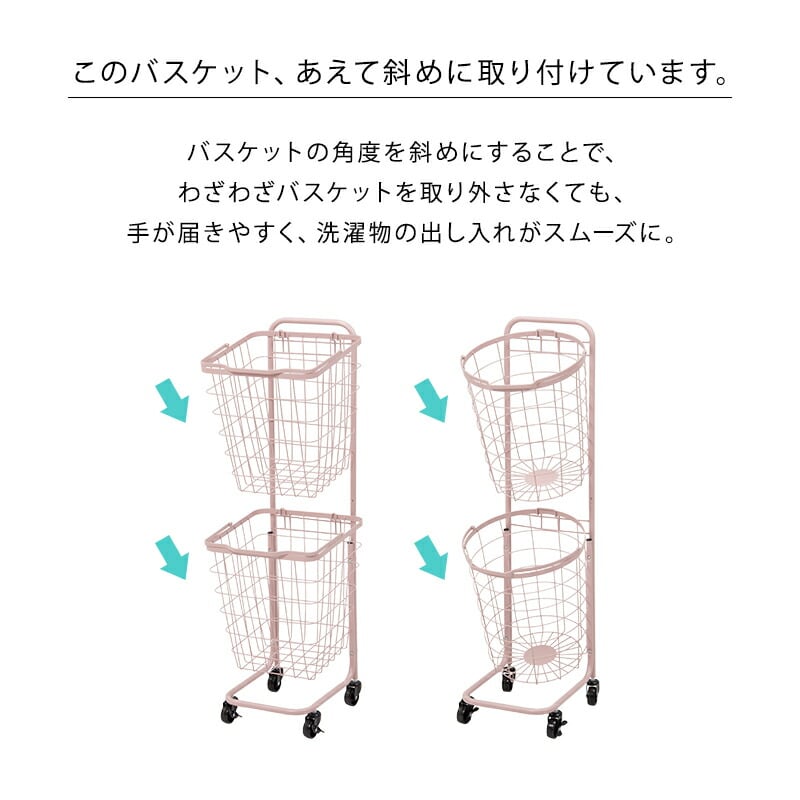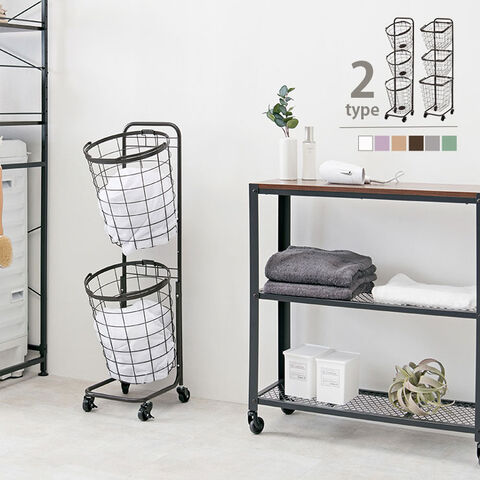 ワイヤーバスケット 2段 洗濯かご 【2タイプ×6カラー】 キャスター付 ランドリーラック 韓国インテリア ランドリーボックス【送料無料】