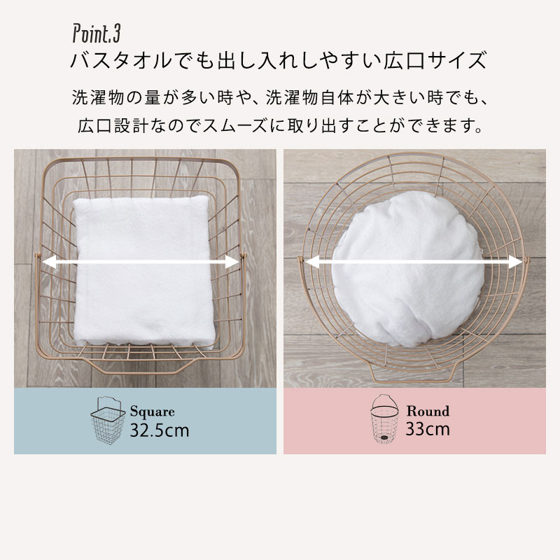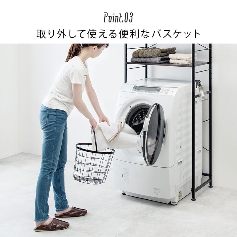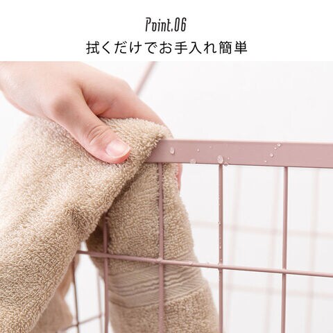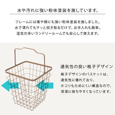 格子デザインのバスケットは通気性に優れており、ホコリもためにくい構造なので、清潔に保ちやすくなっています。