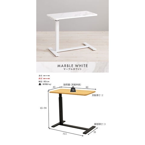 昇降式 サイドテーブル 隠しキャスター付き ガス圧昇降 高さ調節 80×40cm コの字 サイドテーブル ベッドテーブル 机 ソファテーブル リフティングテーブル 木目調 大理石調【送料無料】のレビュー