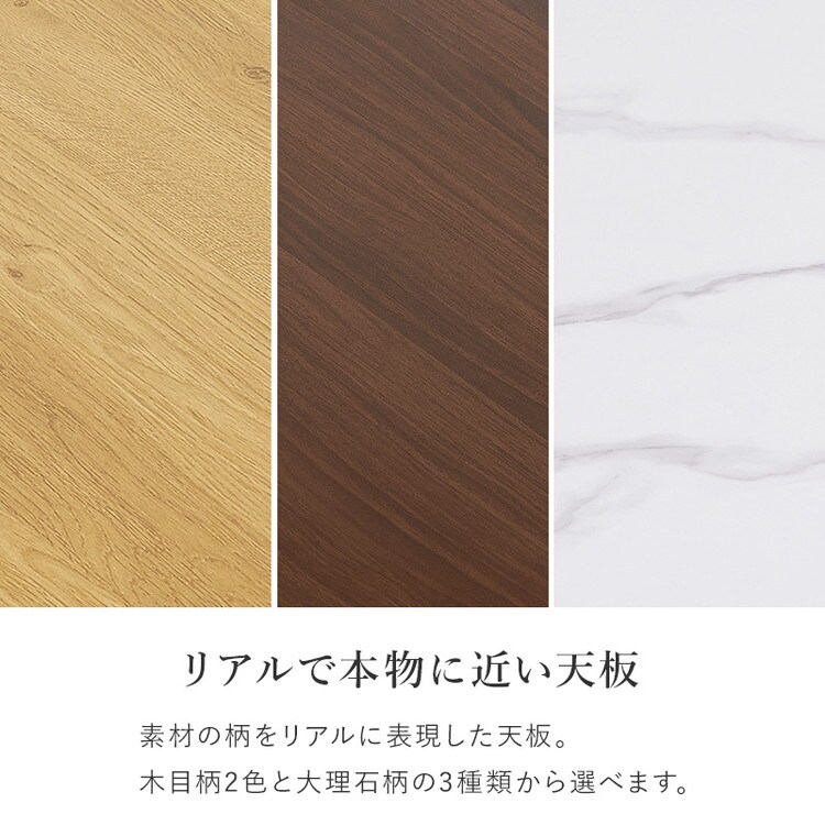 天板:合成樹脂化粧繊維板(メラミン樹脂)、脚部:スチール