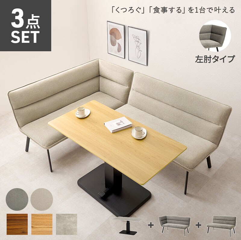 ソファダイニング3点セット 左肘タイプ ダイニングソファ+昇降式テーブル ダイニングテーブル ダイニングソファ 昇降テーブル ダイニングテーブル ソファダイニング【送料無料】