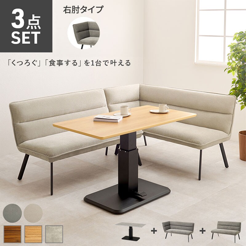 ソファダイニング3点セット 右肘タイプ ダイニングソファ+昇降式テーブル ダイニングテーブル ダイニングソファ 昇降テーブル ダイニングテーブル ソファダイニング【送料無料】