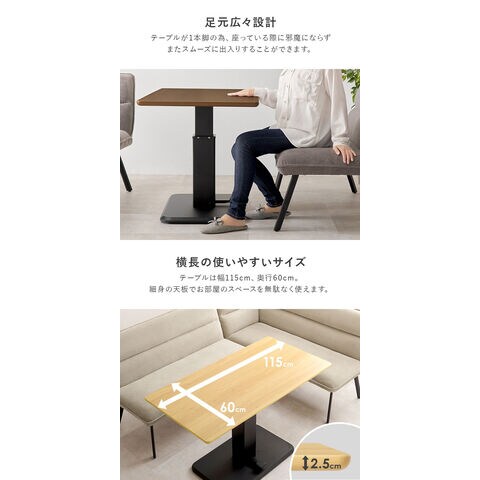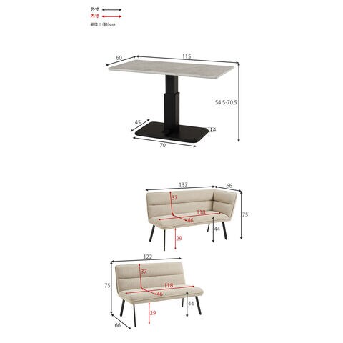 テーブル:(約)幅115×奥行60×高さ54.5~70.5cm
