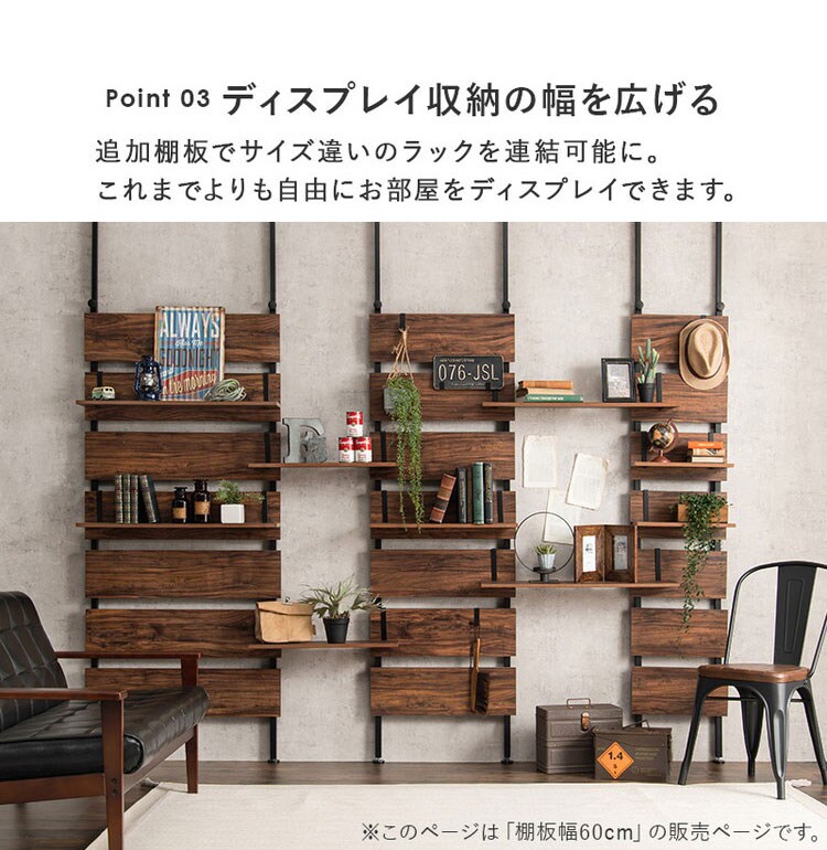 突っ張りウォールラック専用 追加棚板 2枚セット 幅60 追加オプション ウォールシェルフ ウォールラック 壁 引っ掛け 引掛け 木製 壁面収納 キッチン 玄関【送料無料】