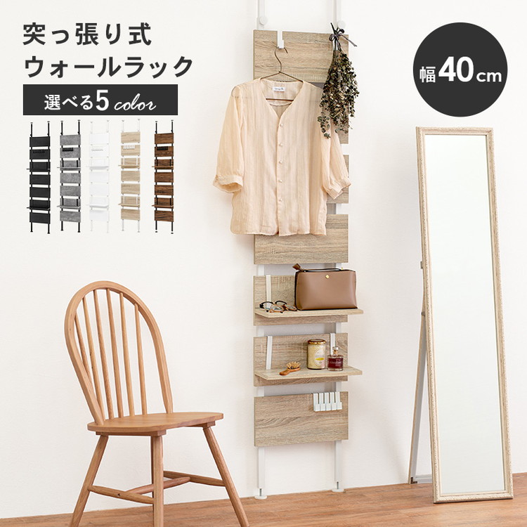 突っ張り棚 幅40cm つっぱり ラック おしゃれ 北欧 突張り 収納 棚 パーテーション 間仕切り ウォールシェルフ 壁 引っ掛け 引掛け 高さ調整 調節 段差 伸縮 木製 壁面収納 キッチン 玄関【送料無料】