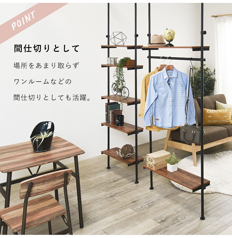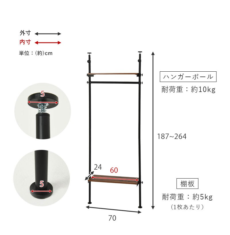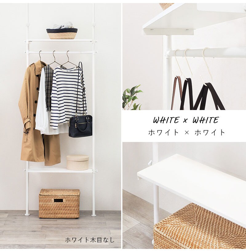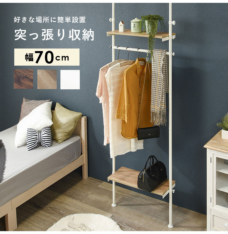 つっぱり ハンガーラック 幅70 突っ張り棚 収納 おしゃれ 木目 突っ張り棒 棚 伸縮 調節 壁面収納 間仕切り 突っ張りラック スリム 白 ホワイト おしゃれ【送料無料】