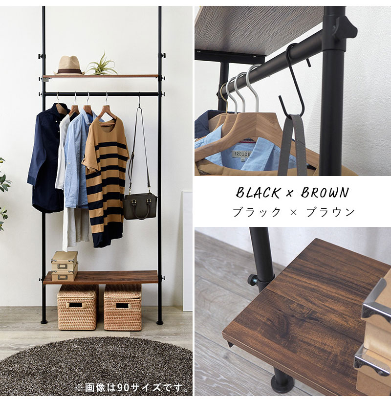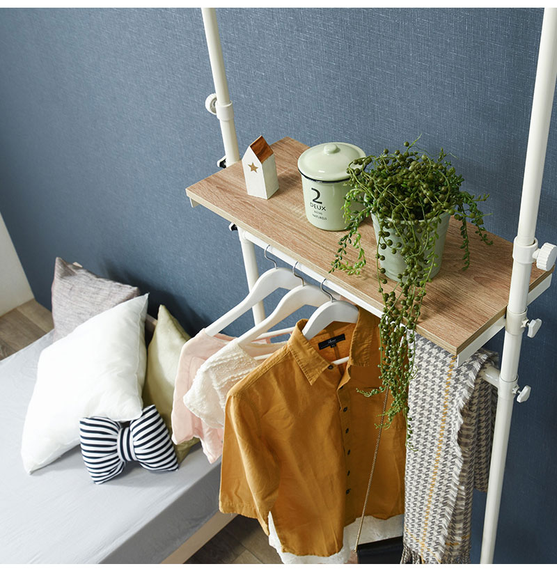 天井と床に突っ張るだけで設置できるハンガーラック。