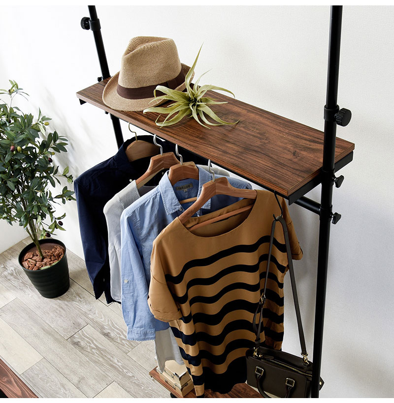 天井と床に突っ張るだけで設置できるハンガーラック。