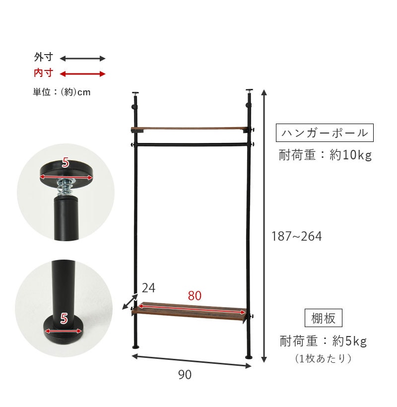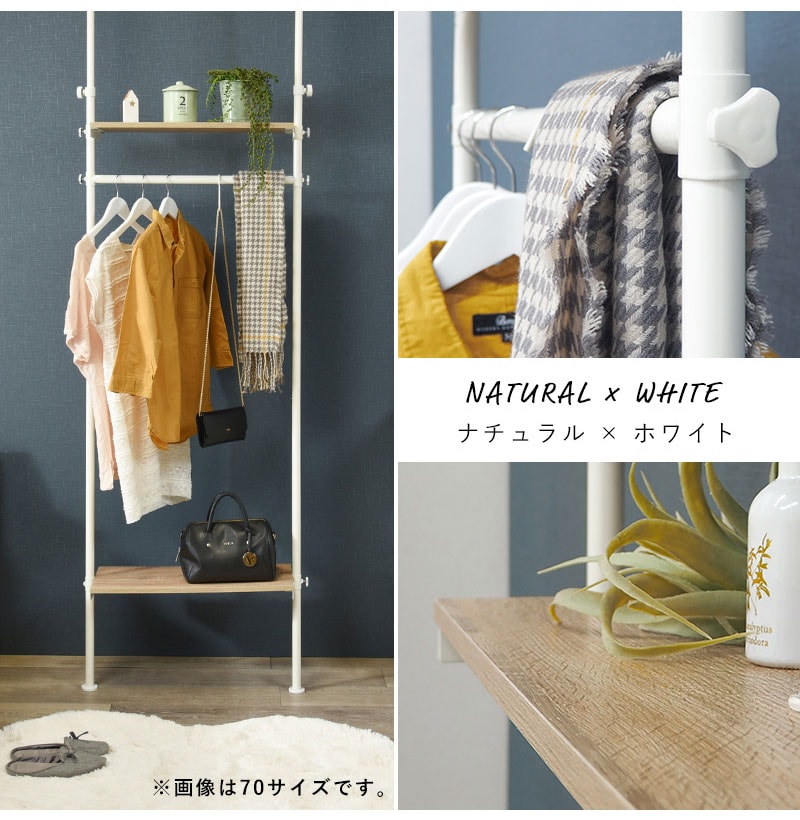 つっぱり ハンガーラック 幅90 突っ張り棚 収納 おしゃれ 木目 突っ張り棒 棚 伸縮 調節 壁面収納 間仕切り 突っ張りラック スリム 白 ホワイト おしゃれ【送料無料】