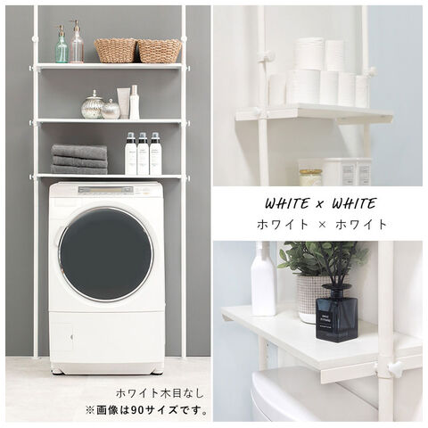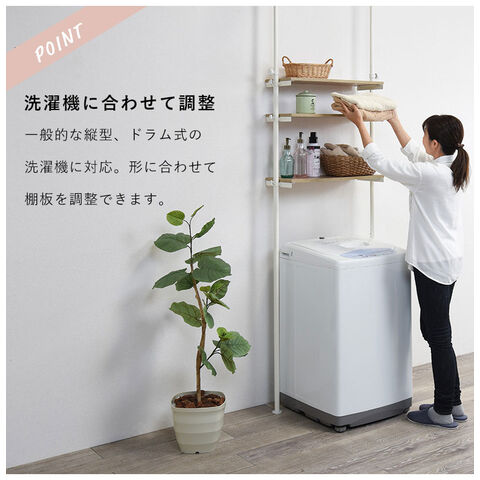 天井と床に突っ張るだけで設置できる洗濯機ラック。