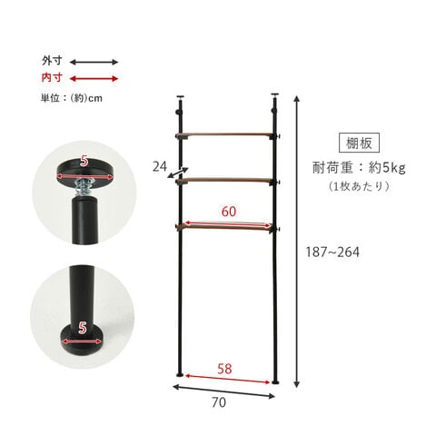 つっぱり 洗濯機ラック 幅70 突っ張り棚 ランドリーラック 収納 おしゃれ 木目 突っ張り棒 棚 伸縮 調節 壁面収納 突っ張りラック スリム 白 ホワイト おしゃれ【送料無料】