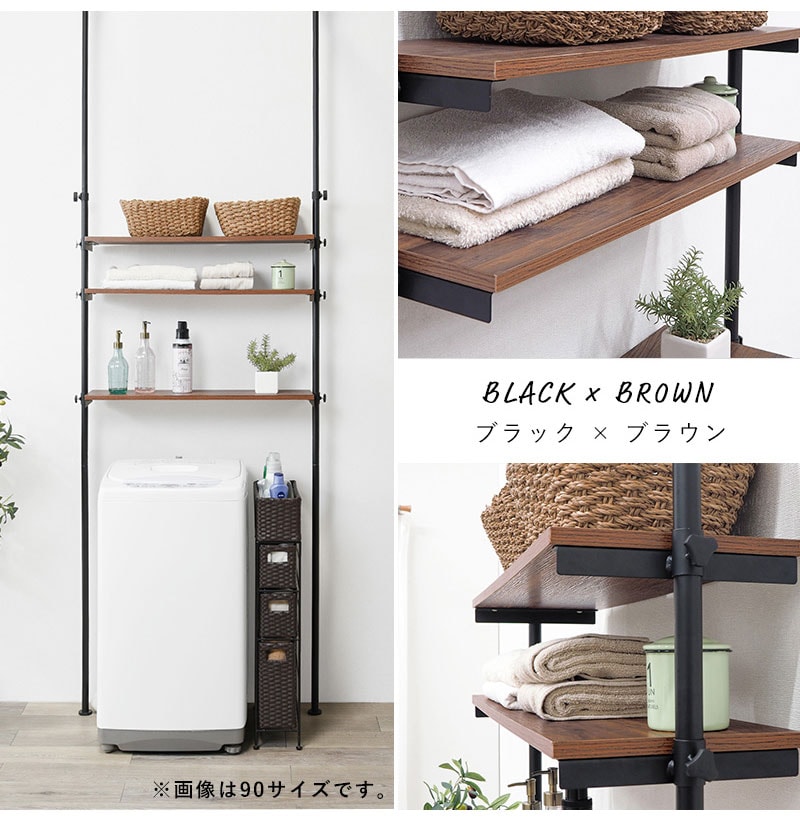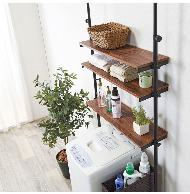 天井と床に突っ張るだけで設置できる洗濯機ラック。